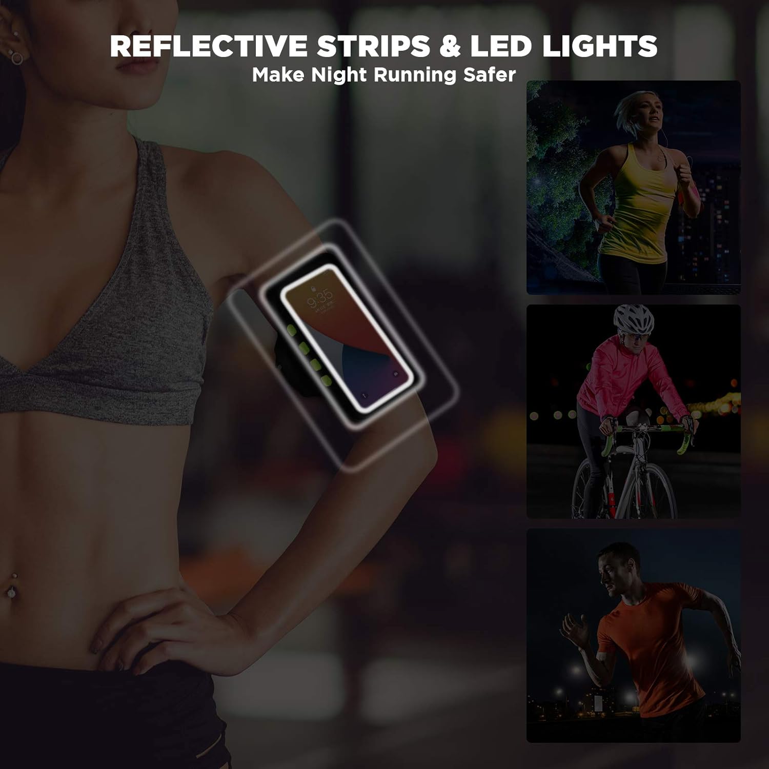 Built-in LED lights keep you clearly visible during early morning runs or late evening walks.